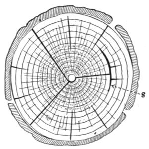 The wood is not as valuable as pine, splitting very easily and being afflicted with shakes, a defect caused by the annual layers or rings breaking away from each other when the trees are swayed by the winter storms. The bark is valuable, however, as it is rich in tannin.