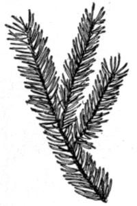 The balsam fir can always be distinguished from the spruce by the fact that the needles only come out at the sides of the twig instead of from all directions, as in the spruce, and its end is blunt, whereas that of the spruce is sharply pointed.