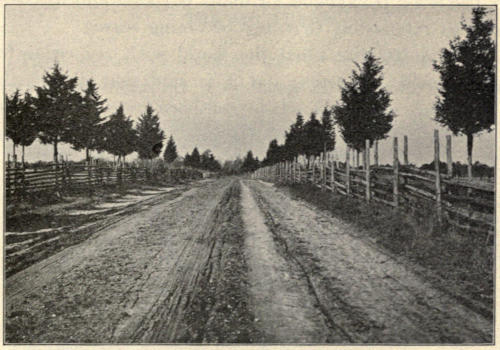 Fig. 130. Red Cedar growing along Roadside from Seed dropped by Birds