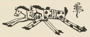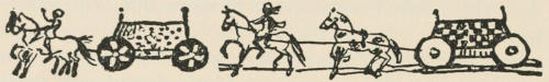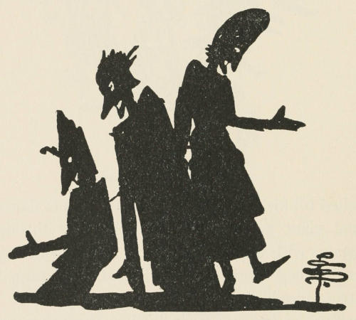 The young giant went on, whistling a little ruefully. Another man passed him, and another,—two or three driving in a tiny cart behind a little animal. Presently they came so thick and fast that Benevaldo had to keep skipping aside to avoid stepping on them. The whole[309] country was dotted with their absurd houses; and he saw now that the green and brown squares must be their fields, and the tiny paths their highways.