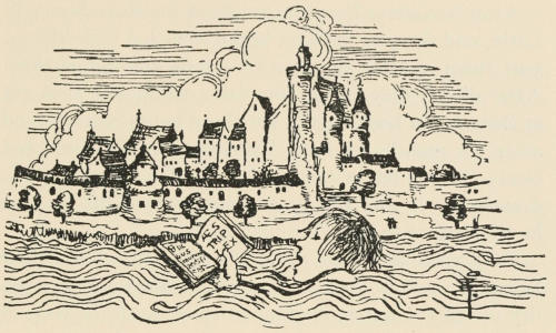 Benevaldo had almost reached the shining towers. Beyond them he could see the dark stretches of the ocean broken only by a few twinkling islands. Out there he could have a cool swim and land perhaps on another, less crowded shore to race back again, through new, wide countries to Giantland.