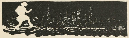 So Benevaldo pranced over the long blocks in between and set his foot in the smooth street. From sidewalk to[318] sidewalk it just fitted; and he walked, one foot ahead of the other, up by the little silent houses to a tiny park.