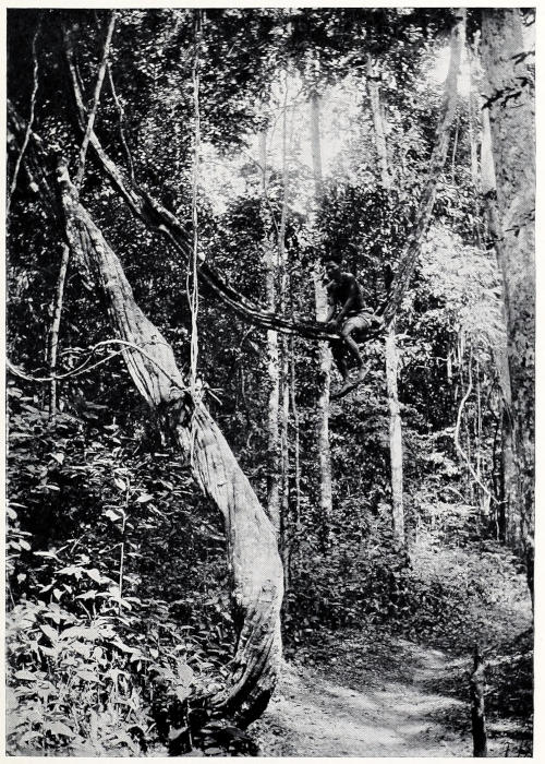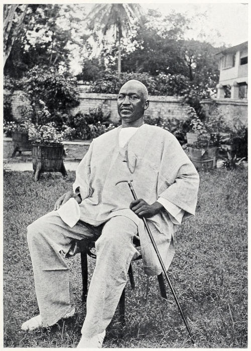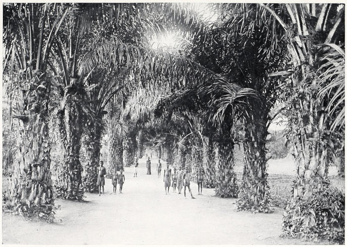 Little remains in the social life of Africa as a result of the work of the early Roman Catholic missionaries. The tribes have no settled church organization based upon the devoted efforts of three centuries ago. Ruins may be seen in several parts and extremely interesting ones too. On the islands of San Thomé and Principe, we frequently saw the partial structure of churches, one of which must have been erected very early in the sixteenth century, for a tomb close to the chancel, grey with age and moss grown, was dated 1542. If the colonists of San Thomé were zealous slavers, they certainly gave much of their ill-gotten gain to the erection of churches. Fragments of these edifices are lying about in the tropical undergrowth and an examination will show that marble pillars, façades, altars, even common stone, had been gathered from the four corners of the earth to build ornate “Houses of God” on these isolated rocks in the Gulf of Guinea. Visiting one of these ruins we were struck by the pathetic reverence with which the natives regarded those crumbling walls; the priest had long since died, and there was none to lead those almost hopeless souls along the path of religious faith. Standing inside those four walls, gazing at the broken altar and the creeper-clad walls, we were forced to keep our heads covered, for the ruin had lost its roof generations before, and the equatorial sun was pouring its direct rays upon us. Directing a question to some of the natives standing near by, we were amazed to find[271] that they refused to answer; two or three times we repeated our questions, but they all maintained immovable positions and refused to utter a single word. A man close at my elbow then informed me that no native could reply whilst the white man kept his hat on his head in the House of God! The silent rebuke of those simple natives forced us to leave the precincts of the old ruin and pass into the little chapel which still remains more or less watertight. Into this place, not more than ten feet square, the natives had moved the images of the Virgin and Apostles, and in the centre of the room a native palm oil lamp sent forth its unpleasant odour. This lamp was half African fetish and half salvation to those natives, for their worship had degenerated into a sort of corrupt Zoroastrianism, and the Alpha and Omega of their religion seemed to be the uninterrupted burning of this light. They were most insistent that since the foundation of the church, between 1500 and 1530, the light had never been allowed to go out!
