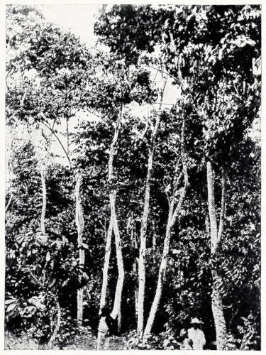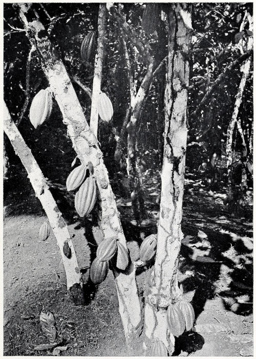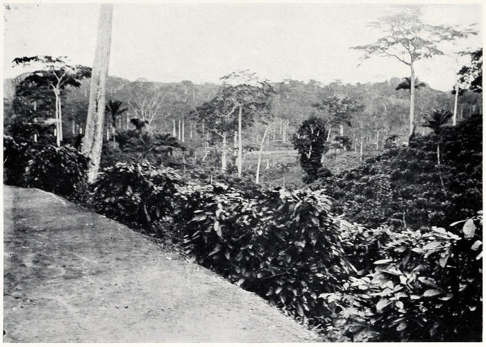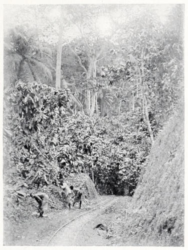 This, however, was but one testimony to the relic worship of the slave islands. Along the roadsides, in secluded corners of out of the way roças, nestling in plantain groves, the traveller may see miniature chapels constructed from rustic forest tree branches, very similar to the fetish houses of the mainland of Africa. In most of these one also sees little prayer-stools, and in all of them a rude cross roughly cut out with the native axe and the cross pieces bound together with forest vines. Most of these crosses are surrounded by native pagan charms, and thus all that is least essential in Christianity is joined together in native religious fervour with the[272] superstitions of paganism, and this gives a melancholy impression of the result of the years of toil and sacrifice by men and women devoted to the theory of the Christian Faith.