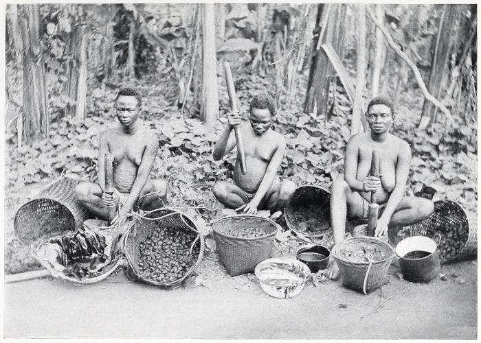 Efforts to win West Central Africa to Christianity divide themselves into two periods. The first effective efforts were made by the Portuguese and Dutch settlers in the sixteenth and seventeenth centuries. The first period was almost exclusively due to Roman Catholic zeal, which, under the blessing of the Pope, regarded the tropics as a preserve of the Vatican. The nineteenth century witnessed but little advance, until Livingstone’s enthusiasm and his romantic career lighted a flame which spread throughout the civilized world, and Protestantism, awaking to its opportunity, began to pour missionaries into the tropical regions of West Africa. The Basel Mission attempted the Gold Coast, and its first missionaries perished to a man; the Church Missionary Society pushed on its work from Sierra Leone away up the Niger, where men and women did little more for a time than replace the dead and dying; the Methodists, never behind any other denomination in enthusiasm, began work in Sierra Leone, Calabar, and the islands of the Gulf of Guinea; the Baptists established an excellent[270] mission in the Cameroons, where they were “elbowed out” by the Germans, and at a later date commenced their great work in the Congo.