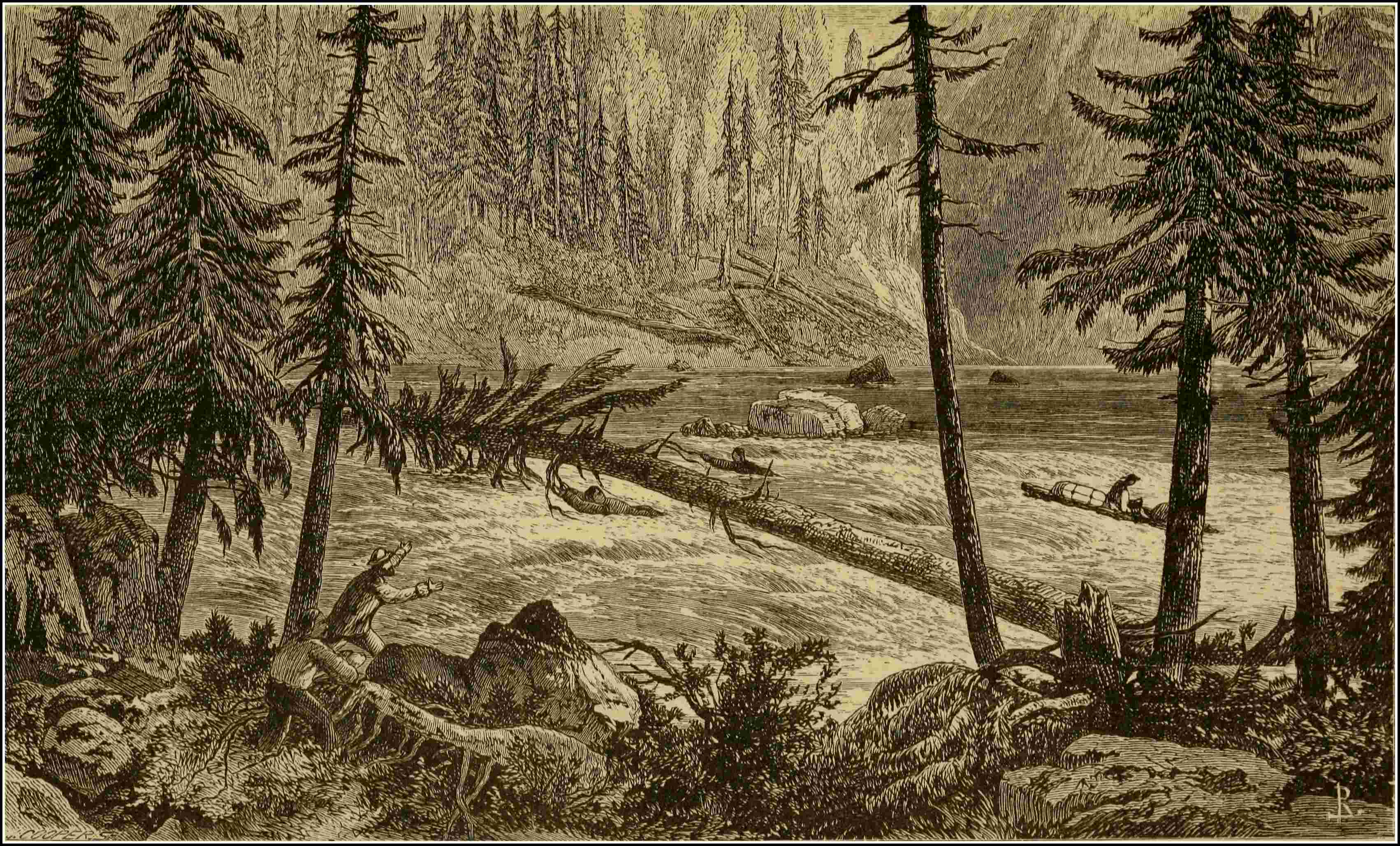 | Tête Jaune Cache—Nature of the Country—Wonderful View—West of the Rocky Mountains—Rocky Mountains still—The “Poire,” or Service Berry—The Shushwaps of The Cache—The Three Miners—Gain but little Information about the Road—The Iroquois return to Jasper House—Loss of Mr. O’B.’s Horse—Leave The Cache—The Watersheds—Canoe River—Perilous Adventure with a Raft—Milton and the Woman—Extraordinary Behaviour of Mr. O’B.—The Rescue—The Watershed of the Thompson—Changes by Beaver—Mount Milton—Enormous Timber—Cross the River—Fork of the North Thompson—A Dilemma—No Road to be Found—Cross the North-west Branch—Mr. O’B.’s Presentiment of Evil—Lose the Trail again—Which Way shall we Turn?—Resolve to try and reach Kamloops—A Naturalx Bridge—We become Beasts of Burden—Mr. O’B. objects, but is overruled by The Assiniboine—“A Hard Road to Travel”—Miseries of driving Pack-horses—An Unwelcome Discovery—The Trail Ends—Lost in the Forest—Our Disheartening Condition—Council of War—Explorations of The Assiniboine, and his Report—A Feast on Bear’s Meat—How we had a Smoke, and were encouraged by The Assiniboine | 264 |