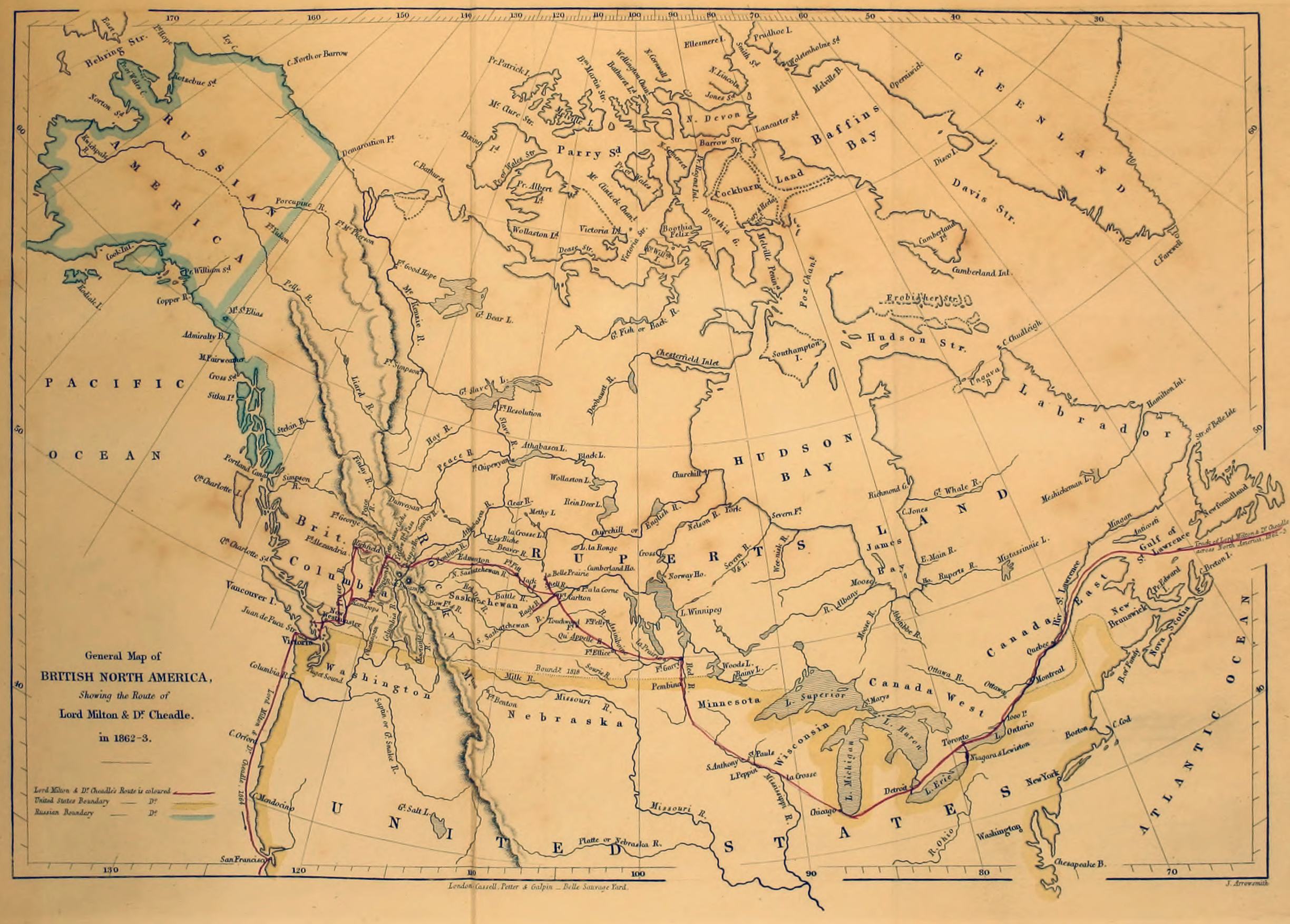 | General Map of British North America, showing the Authors’ Route across the Continent (Bound with Volume.) | |