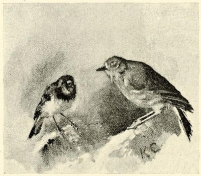 [5] Pied Fantail. Piwakawaka (Rhipidura flabellifera.)—A small fly-catcher; plumage greyish brown. While busily engaged catching mosquitos or sand flies, these birds steer with their fan-shaped tails, making fantastic evolutions in the air. When a fantail has spied out with its big black eyes the hiding place of the owl, in the daytime it will call its mates together and show them the spot where their enemy dwells, and then all the birds dart at the owl, and fly round and round, annoying it in every possible manner until they chase it away.—A. R.