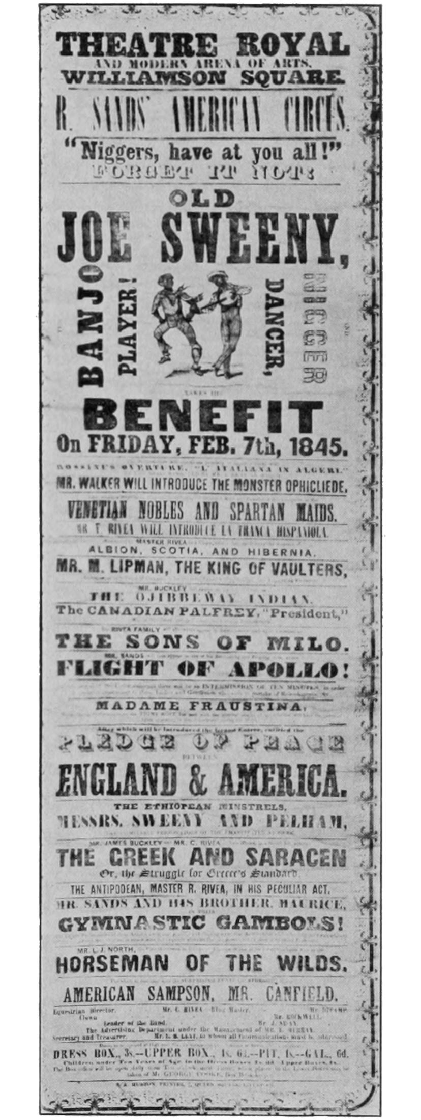Monday evening, Feb. 6. 1843, first night of the novel, grotesque, original and surpassingly melodious Ethiopian Band entitled