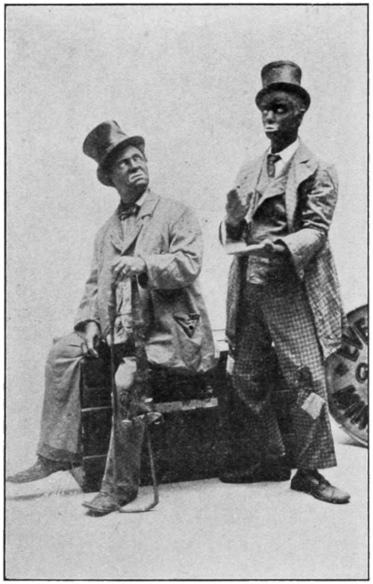 I can remember, as a youngster even before my school days began, my father asking me if I wanted to be a minstrel? I knew that my mother was averse to it and, as they both looked at me awaiting my reply, I vehemently said NO; that was the first lie I ever told. I have done better subsequently, but they have no bearing on this matter. When I was about six or eight years of age, my father, wishing to celebrate the occasion in a fitting manner, took me down town (Philadelphia) and giving me my choice to go in one direction and see “Jack the Giant Killer,” or take another route and see the minstrels. I had heard a whole lot about the youthful prodigy who made a business of trimming big husky gents for the sake of getting an appetite that he might better enjoy his meals, and confess to a feeling of curiosity; but it was the “nigger singers” for mine, and it was there that I obtained my first recollection of any individual performer. It was Bobby Newcomb doing Topsy. Whether it was an “Uncle Tom” show, with which the late minstrel was prominently identified at one time, or whether it was a burletta on Mrs. Stowe’s immortal work, I never learned, but Newcomb’s dress, a ragbag affair, I remember distinctly, subsequently, one made from an American flag, finishing with the well-known suit of white duck in knee-breeches. That was the beginning. I decided then that a minstrel’s life was the life for me, and for years I importuned my father to take me on the road with him, finally obtaining a promise to go the next time he took a show out. This was somewhat hazy, but I clung to it tenaciously, and when in July, 1890, he organized the World’s Fair Minstrels, my happiness was unbounded. I was in Philadelphia at the time, passing cigars and tobacco over the counter of a Smoke Emporium presided over by Lew Simmons, one[2] of the oldest active minstrels in harness to-day; observe the date again, please. July, 1890, was it not? At that time Lew had given up the minstrel business entirely. I recall Lew Dockstader dropping in one day and inquiring how he (Simmons) liked the business? “Like it?” said the senior Lew, “why I am perfectly happy; I wouldn’t go back in the business again for $100 per week.” (I remember it was PER week.) But he did, a couple of years later, and from all appearances looks good for a few more. I joined my father’s troupe. We opened at Elizabeth, N. J., on July 17th. In the company were Billy Birch, Frank Moran, Frank Kent and Bob Slavin; all since passed away.