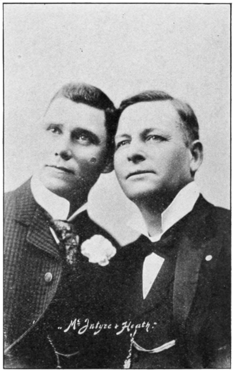 From the Albert Davis collection of photographs, Brooklyn, I have received invaluable specimens, likewise Eddie Fox, Mrs. Billy Rice, “Hank” Mudge, Harry Booker, Emil Heusel, John Unsworth, Billy Huntley, Mrs. J. T. Huntley, Tommy Granger; Charles E. Ellis, author of “Official Elks History;” Mrs. James Budworth, Mrs. G. W. H. Griffin, Mrs. Archie Hughes, “Bill” Hines, Dan Mason, Phil. A. Paulscraft, Mrs. Ben Cotton, R. H. Mayland, Gus Hill, Fox & Ward, John P. Hogan, Miss Maggie Weston, Frank Dumont, William Blakeney, New York Sunday Telegraph; Louis Morgenstern, Tom Ward, Will Webster, Mrs. Catherine Griffin, Tom Waters, McIntyre & Heath, Geo. Lewis, Nick Norton, Geo. L. Willson, Chapin & Gore, Chicago; Willis P. Sweatnam, Walter Kingsley and the late J. H. Surridge.