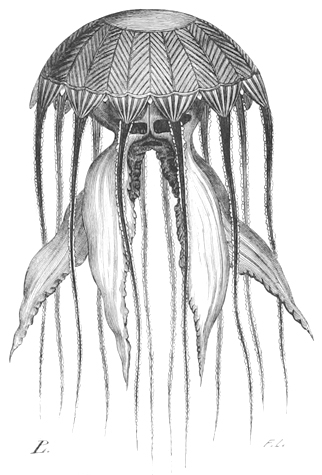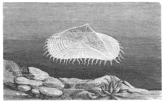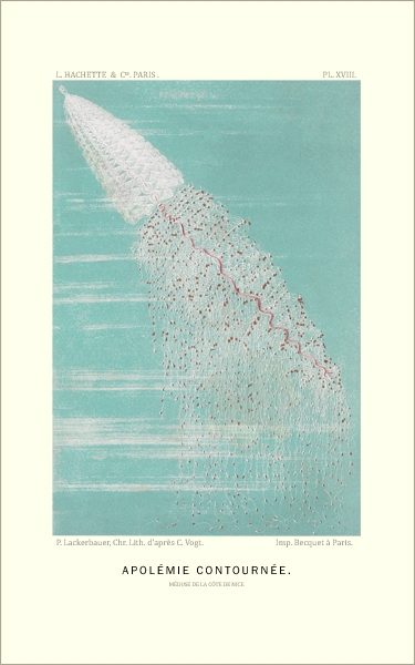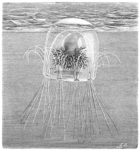 Quand on descend dans l’Océan, on voit s’évanouir peu à peu les teintes azurées. A l’éclat du jour succède une lumière douce et uniforme; bientôt, on entre dans un crépuscule rougeâtre et terne; les couleurs se fondent, s’assombrissent, et l’on arrive par degrés à une nuit profonde.