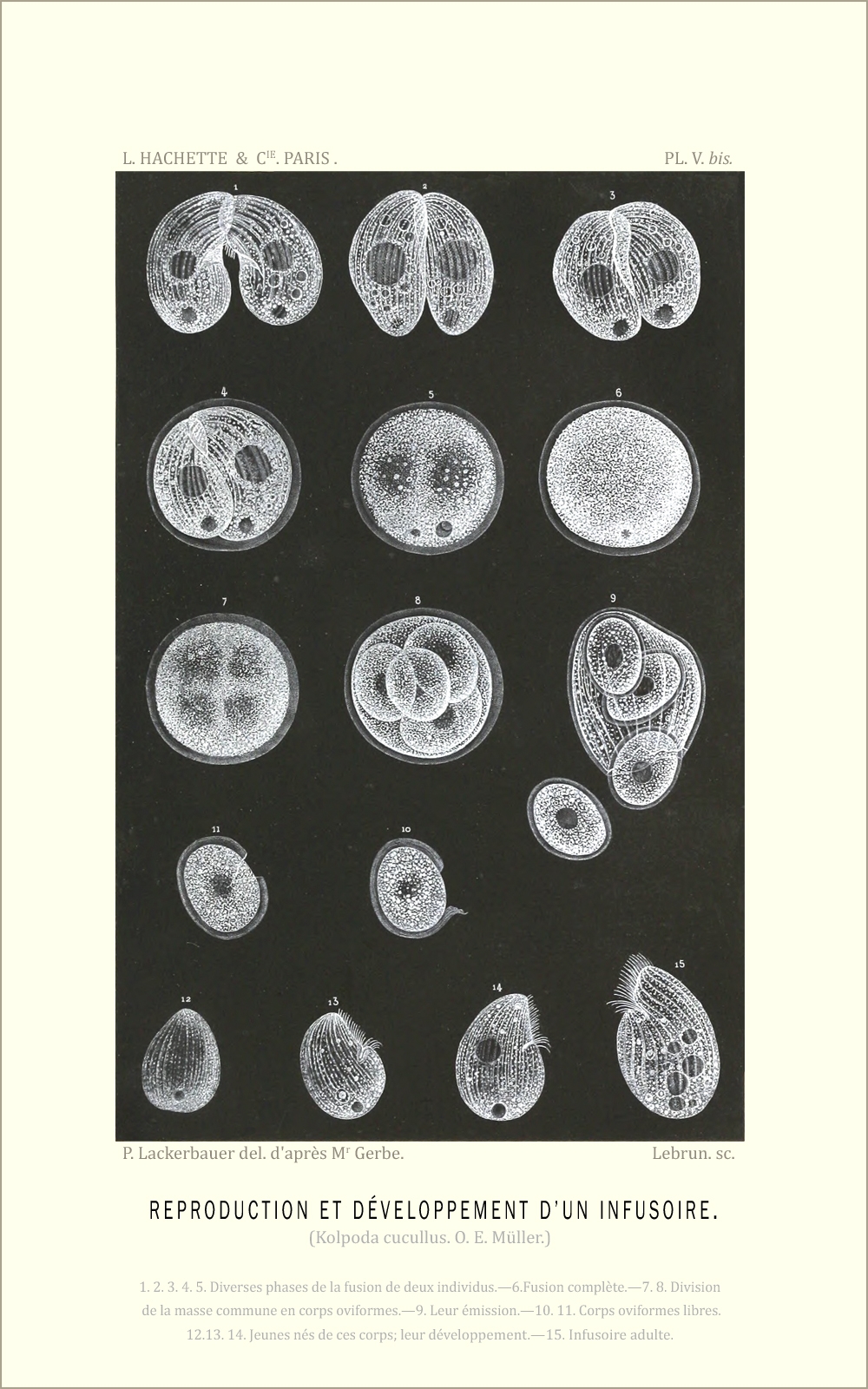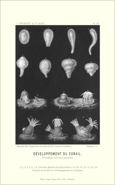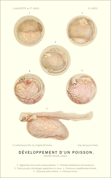 L’ouvrage est en outre augmenté d’un aperçu du développement des êtres; on peut suivre dans une série de planches les phases successives de leur formation.