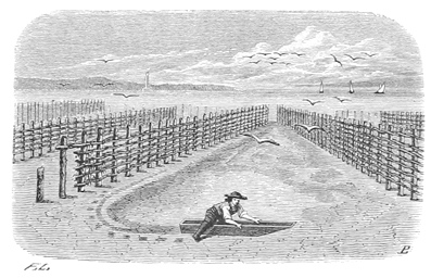 Les océans communiquent avec les continents et les îles par des côtes, lesquelles sont dites escarpées, quand un sol de roche s’étend et arrive brusquement jusqu’aux rivages, comme en Bretagne, en Norvége et en Écosse. Dans ce genre de côtes, certaines sont dentelées, c’est-à-dire ceintes de rochers, soit au-dessus, soit au-dessous de l’eau, formant souvent des labyrinthes d’îles. D’autres s’enfoncent tout d’un coup, laissent la mer libre, et produisent des falaises: telles sont les côtes de la Manche. Les côtes sont dites basses, quand elles sont formées par des terrains argileux 4 et mous qui s’abaissent en pentes douces. On en distingue de deux sortes, celles par collines et celles par dunes.