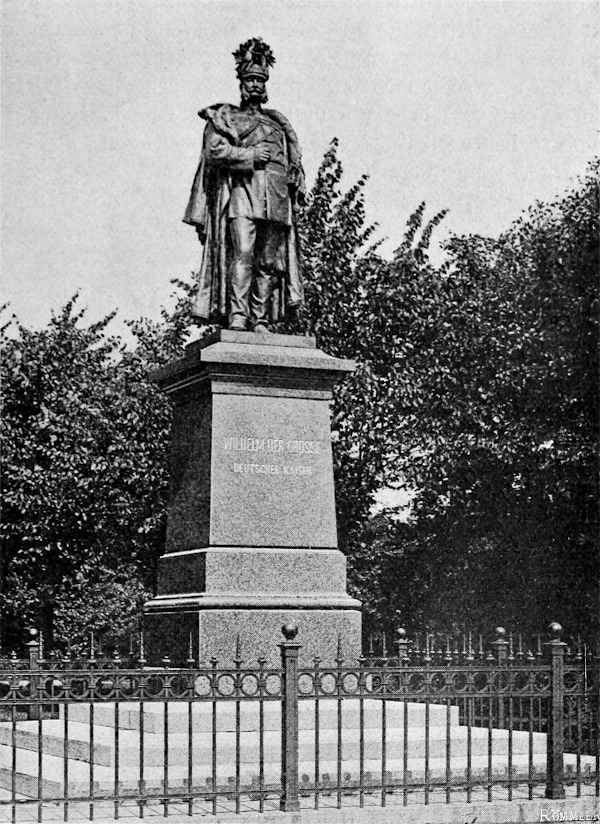 Zweier Denkmäler, die in Wilhelmshaven errichtet worden sind, sei hier noch kurz gedacht, desjenigen des Prinzen-Admiral Adalbert von Preußen, von Schuler entworfen und 1882 enthüllt, vor der Elisabethkirche, und des vom gleichen Künstler modellierten Monuments Kaiser Wilhelms I., im Jahre 1896 eingeweiht. Heppens im Norden und Bant im Westen der Stadt Wilhelmshaven befinden sich bereits auf oldenburgischem Grund und Boden. Wilhelmshaven wird nach der Land- und der Seeseite zu von starken Befestigungen verteidigt.