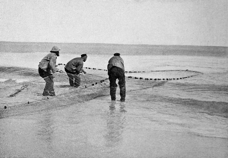 Der starke Salzgehalt und die hohe Temperatur ihres Wassers lassen ein Zufrieren der Nordsee auf hoher See niemals zu. Dagegen sind Eisbildungen an den Küsten und im Wattenmeer nicht selten; wir werden noch im folgenden Gelegenheit haben, darauf zurückzukommen. Unsere Abb. 7 u. 8 veranschaulichen die besonders im Winter erhöhte Schwierigkeit des Verkehrs im Wattenmeer.