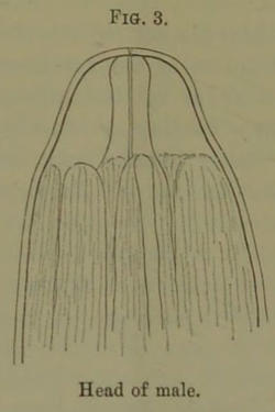 Fig. 3.—Head of worm, with rounded projection of wall of worm at one point, due to injury.