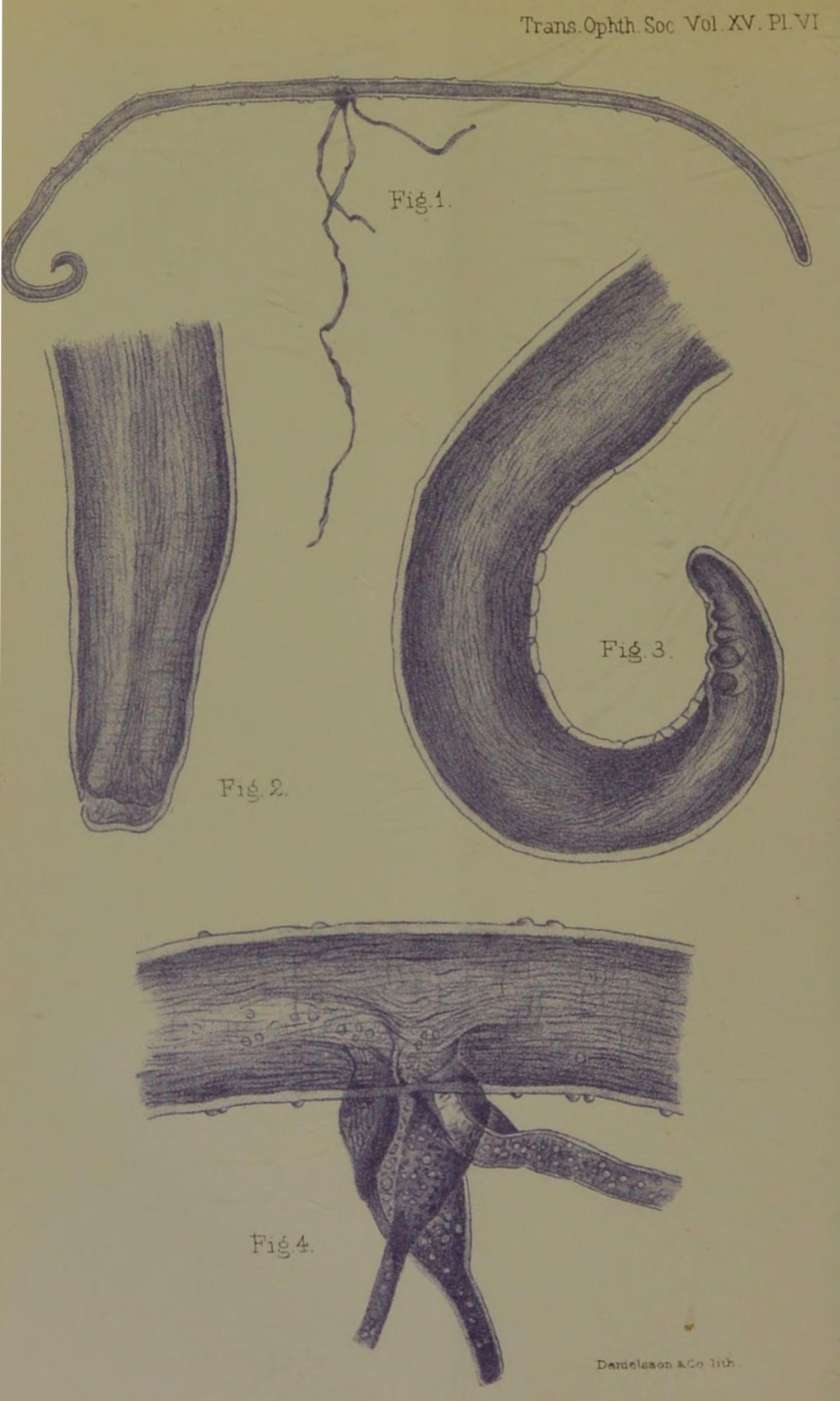 Another case is mentioned by Dr. Sigaud in his work on the ‘Climate and Diseases of Brazil.’ He states he was witness in 1833 of the extraction, by M. dos Santos, of a filaria situated in the orbit on the surface of the sclerotic of a negress.