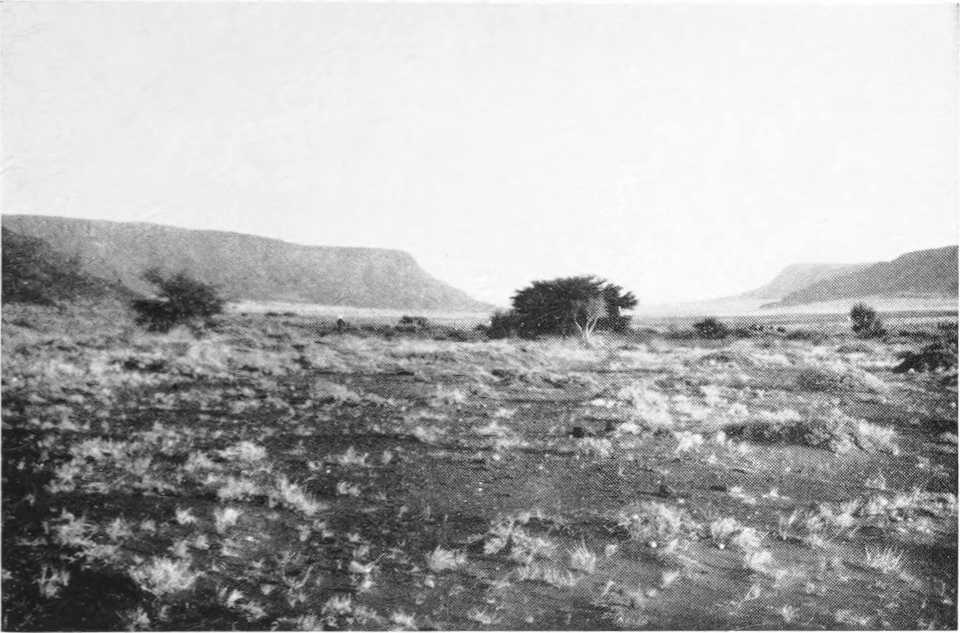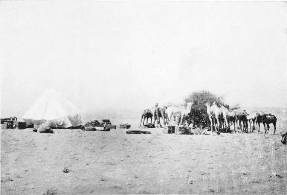 At this point begins a wide barren stretch of flat and desolate country, devoid of rocks of any particular geological interest beyond the thin covering of “sand and alluvium” which extends for nearly 200 km. (four days of monotonous marching) along the route to the south.