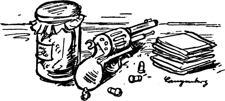 Sintemalen es sich um ein deutsches Gefangenenlager handelte, hatte dieses natürlich einen großen Wellblechschuppen, der je nach Tageszeit und Laune als Kirche, Theater, Universität, Konzertsaal oder Vortragsraum diente. Da Wanzenjagd als einzige Betätigung auf die Dauer von dreieinhalb Jahren nicht befriedigen kann und da ich doch auch etwas zur Unterhaltung meiner 800 Con-Abenteurer beitragen wollte, verfiel ich auf den für mich gewiß sehr abenteuerlichen Plan, ihnen von meiner Berittenen Neunten zu erzählen. Ich schrieb mir’s auf, und 16 Leseabende waren das Resultat.