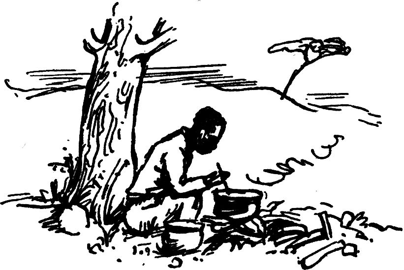 Auf unserm Runden Berg haben wir sechs oder sieben Tage gesessen und ständig Patrouillen nach vorne geritten. Zuerst verpflegten wir uns nur aus der Landschaft, denn unsere Bagage war noch weit zurück. Die Tiere lebten von grünen, halbreifen Mtamastauden und von vorjährigem Mtamakorn, das wir noch in einigen verlassenen Hütten vorfanden. Sie gediehen, nachdem sie sich an die neue Kost gewöhnt hatten, dabei besser als früher bei Körnermais. Wir suchten in Eile verlassene Eingeborenendörfer nach Hühnern und Eiern ab und machten reichliche Beute; auch einige versprengte Ochsen der Eingeborenen fielen in unsere Hände. Geradezu glänzend aber wurde die Sache, als Dr. Sinning, der, weil schonungsbedürftig, das Kommando unserer Trägerkolonne erhalten hatte, diese schließlich bis auf 14 Kilometer an unsere Stellung vorgebracht hatte und uns nun nicht nur Brot, sondern sogar fertig gekochtes Essen, Schnaps und Zigaretten vorschickte. Wir ließen den fürsorglichen »alten Stock« hochleben und waren in puncto Verpflegung wieder mal obenauf, besonders da der tüchtige Unteroffizier Horn, der bei unsern kranken Tieren in Dodoma geblieben war, dort Wurst-, Speck- und Butterbeziehungen angeknüpft hatte. Auch Sanitätssergeant Trimpler nahm sich mit Nachdruck der Ernährungsfrage an. War Steins Liebhaberei das blitzartige Ausheben von Erdlöchern und die Errichtung von Sitzstangen gewesen, so wurde die gemeinsame Küche, eine Art tragbare, aus zwei großen Töpfen bestehende Feldküche, Trimplers Steckenpferd. Was war das schön, so ganz mühelos einen Schlag Essen und Kaffee zu erhalten.