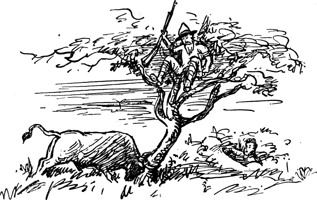 Auf der Frommen Helene, so genannt, weil sie sich von dem störrischsten Maulesel der Welt im Laufe vieler Jahre in das faulste Exemplar ihrer Spezies hineingealtert hatte, ritt ich, natürlich in sausendem Schritt, den Weg zum Steinbruch der Farm. Plötzlich stand uns (ich meine Helena und mir) an einer Wegebiegung eine Löwin auf zehn Schritt gegenüber. Ich hatte kein Gewehr bei mir und war sehr erstaunt. Die Löwin schien auch erstaunt, aber noch erstaunter war die Fromme Helene. Sie löste die für alle Beteiligten peinliche Situation, machte kurz kehrt und jagte in einem solchen Tempo zum Gehöft zurück, daß ich schließlich doch am meisten staunte, und zwar über die Geschicklichkeit, mit der Helene bisher zu verheimlichen gewußt hatte, daß sie außer Schritt noch andere Gangarten kannte. Die Löwin machte ebenfalls kehrt und sockte ab. Menschenfresser ist in jener wildreichen Gegend der Löwe nicht.