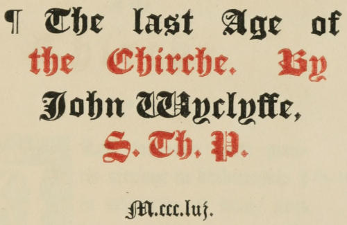 Nothing appears in the Volume to indicate the exact Year in which it was transcribed, but the Hand-writing would lead us to assign it to the latter End of the fourteenth or Beginning of the fifteenth Century. It is imperfect in some places, but contains a very valuable Collection of the Tracts of Wyclyffe, for a complete List of which the Reader is referred to some Papers that were published in the Year 1835, in the British Magazine[15]; where he will also find an Account of the Treatise, now for the first time printed, “On the last Age of the[xx] Chirche,” with an Exposure of certain Mistakes that have been committed respecting it. Several of the Remarks contained in those Papers have been transferred to the Notes, which will be found at the End of the present Volume.