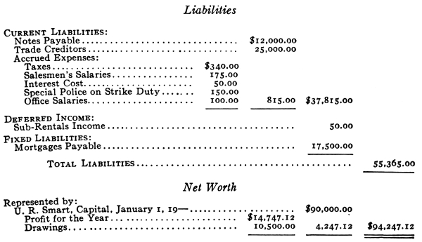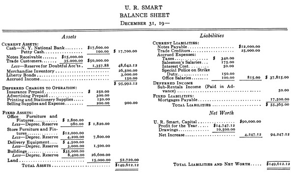 It annually inventories all its assets and liabilities and from such inventory prepares a financial statement. At December 31, 19—, this inventory is as follows: