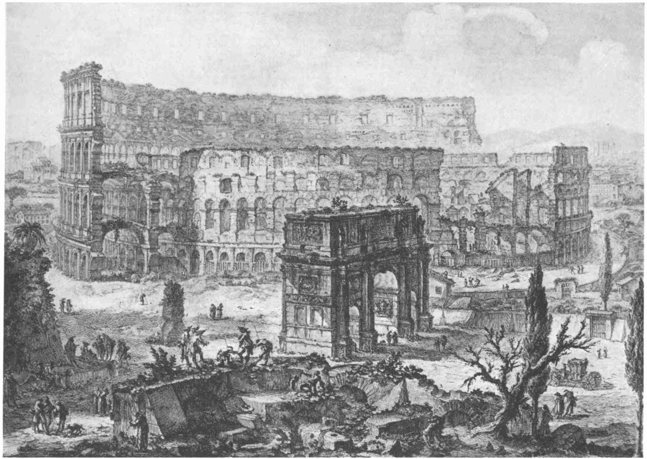 Architecturally speaking, we live at a time somewhat similar to that in which the genius of Piranesi first made its impact upon English designers. In the latter half of the eighteenth century English architects and patrons were alike growing a little tired of pure Palladianism. The novelty and spirit of Inigo Jones’s work had given place to the uninspired correctness of Campbell, Kent, and a host of lesser disciples. Restrained and elegant as the work of those architects appears to modern eyes, after the debauch of “free Classic” from which we are now emerging, it is nevertheless true that, at that time, the English Palladian formula was nearly exhausted. The circuses and crescents of Bath, with their unfluted columns and dull ornament, their endless repetitions of correct features, could not be indefinitely extended. The early Georgian houses, so comfortable in the country, began to look a little coarse and provincial in London streets, particularly to those who had taken the Grand Tour.