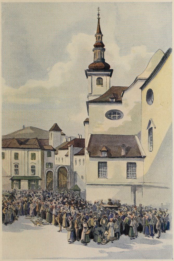 As is fitting in a place regarded as of great military importance, Ulm figures in the annals of war. It was hence that the Elector of Bavaria set out for the famous battlefield of Blenheim some distance down the river, and it was here that the Austrian General Mack shut himself up with a force of over thirty thousand men to stay Napoleon’s rapid advance on Vienna in 1805. Despite the importance of Ulm, despite the formidable army he had with him—with ample provisions and ammunition—Mack surrendered the town almost without striking a blow; “yet somehow he was suffered to escape[Pg 10] the punishment of which he was thought to be richly deserving.”