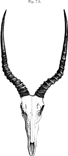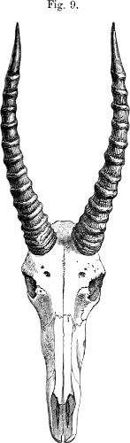 Skull and horns as described above (p. 213). Dimensions of an adult male skull: basal length 6·5 inches, greatest breadth 3·2, muzzle to orbit 3·65.