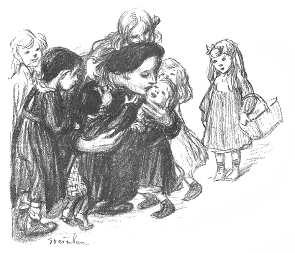 —Ah! la mère est sauvée et justement qu’elle était enceinte! c’en est une chance, là! on peut dire!... Figurez-vous que j’arrive de loin et je les avais rencontrés tous les trois... elle portait le petit qui pleurait, il pleurait à fond, vous savez ces pleurs sans consolation où coule la détresse accumulée de toute une race... et la Souris, si vous aviez vu ses mignonnes jambes qui tricotaient! Vous connaissez sa voix sage et bonne? Voilà qu’en passant près de moi, elle raisonnait: «Il est bien petit, ton poussin, 303 maman, mais il est bien méchant!» Si vous aviez entendu la façon aimante dont elle appuyait sur l’e de petit: «Il est bien petit, ton poussin...» Et, faut croire que je me doutais de quelque chose; en sortant de l’école, je suis allée par là sans motif... Mais je n’ai pas voulu les suivre et je me rappelle: au bout, c’était le Canal et l’on apercevait les deux montants d’une passerelle comme deux longs bras noirs vers le ciel... Alors, on l’a repêchée tout de suite, la mère?