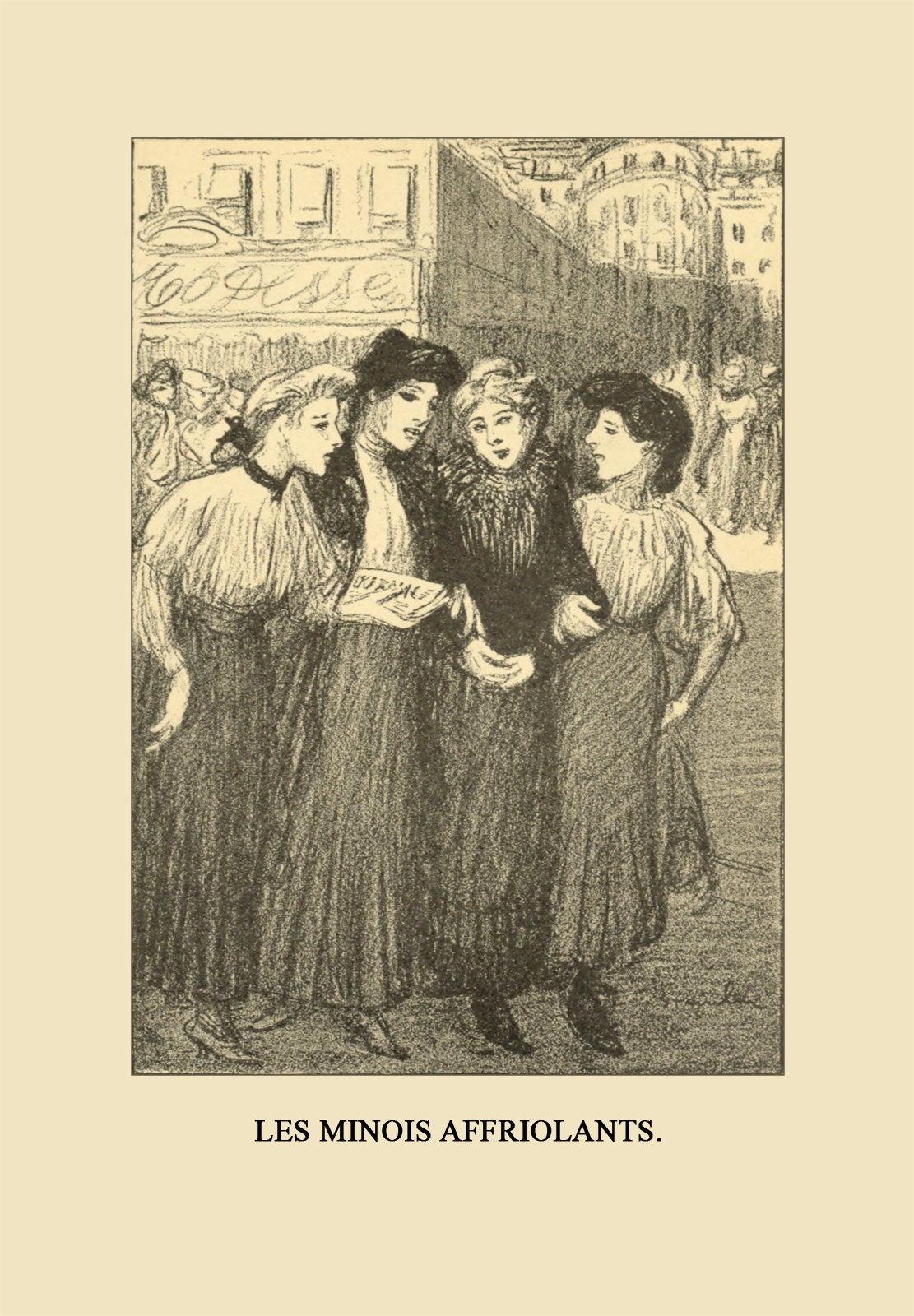 La rue part du boulevard de Ménilmontant. Les fiacres y sont rares et les passants peu variés: la majorité des gens apparaissent en savates et nu-tête; des journées entières peuvent s’écouler sans que l’on rencontre un pardessus ou un chapeau de haute forme. Cependant l’animation ne manque pas. Des quantités d’affaires se traitent dehors à grands éclats de voix et comportent l’appoint de solides horions. Quand l’école n’est pas ouverte, des déballages considérables d’enfants jonchent le trottoir et la chaussée.