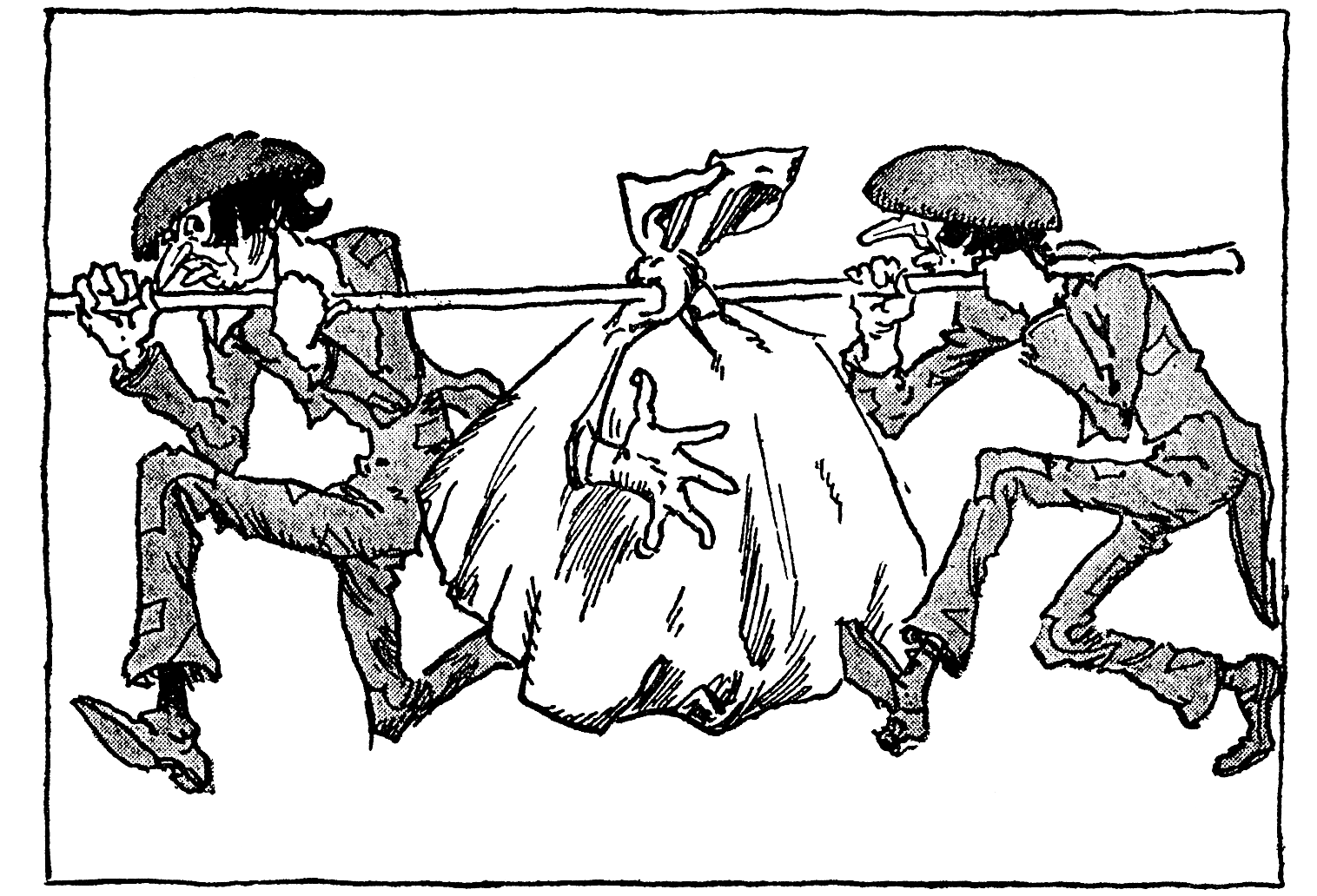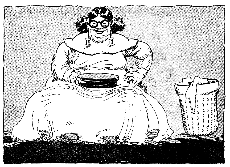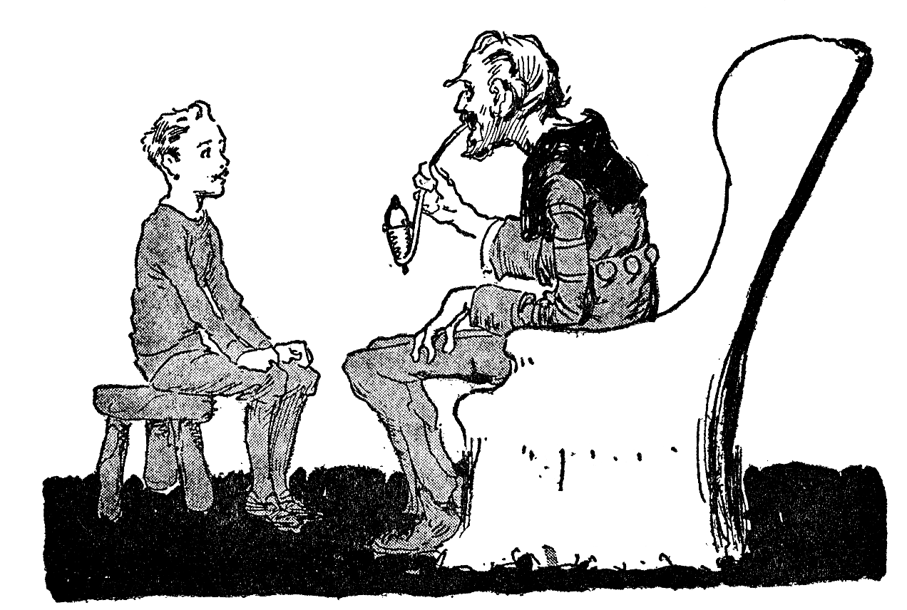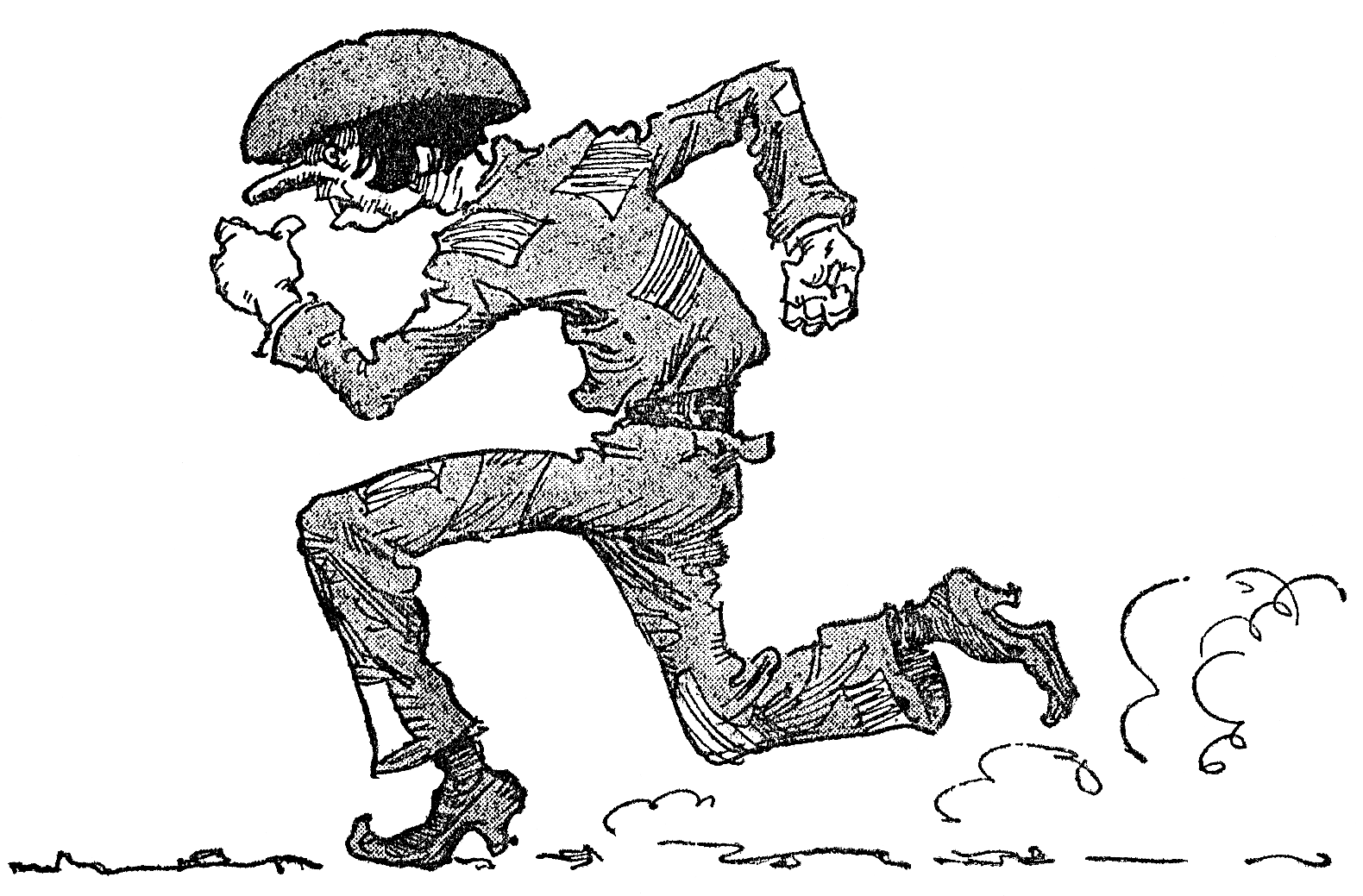 “No, but I feel something,” grunted Piecer, peering anxiously down at his feet. “Beeswax and basting threads!”