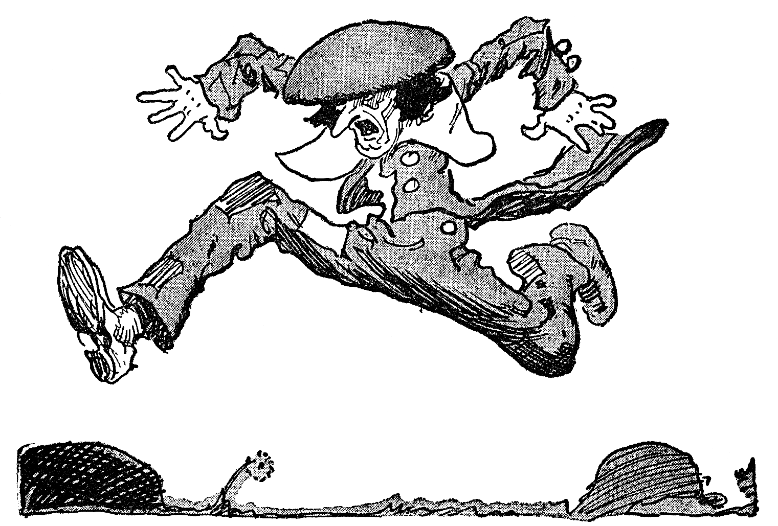 “Now for the next ruler!” gasped Scrapper. Scrambling to his feet, and without pausing to brush off the dust, he bounded after the spool. It was fairly whistling ahead now, bouncing over rocks and tree stumps, so that the two Patchy Statesmen, in their endeavor to keep up with it, looked like a couple of boys playing leap frog. When it did stop Piecer was too giddy to see, but Scrapper gave a loud roar of anger.
