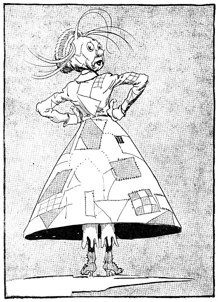 For miles around people brought their old clothes to Queen Cross Patch for repairs, so that Patch was as busy and prosperous a little Kingdom as you would find anywhere, but by no means a pleasant one. Constant picking of the scraps in their garden patches had made the Quilty men exceedingly scrappy, and constant stitching upon the patch-work quilts had made the Quilty ladies extremely cross and crotchety. Indeed, everything about this little country was cross and patchy. All the roads were cross roads, and the houses as patched and shabby as the clothes of the people who lived in them.