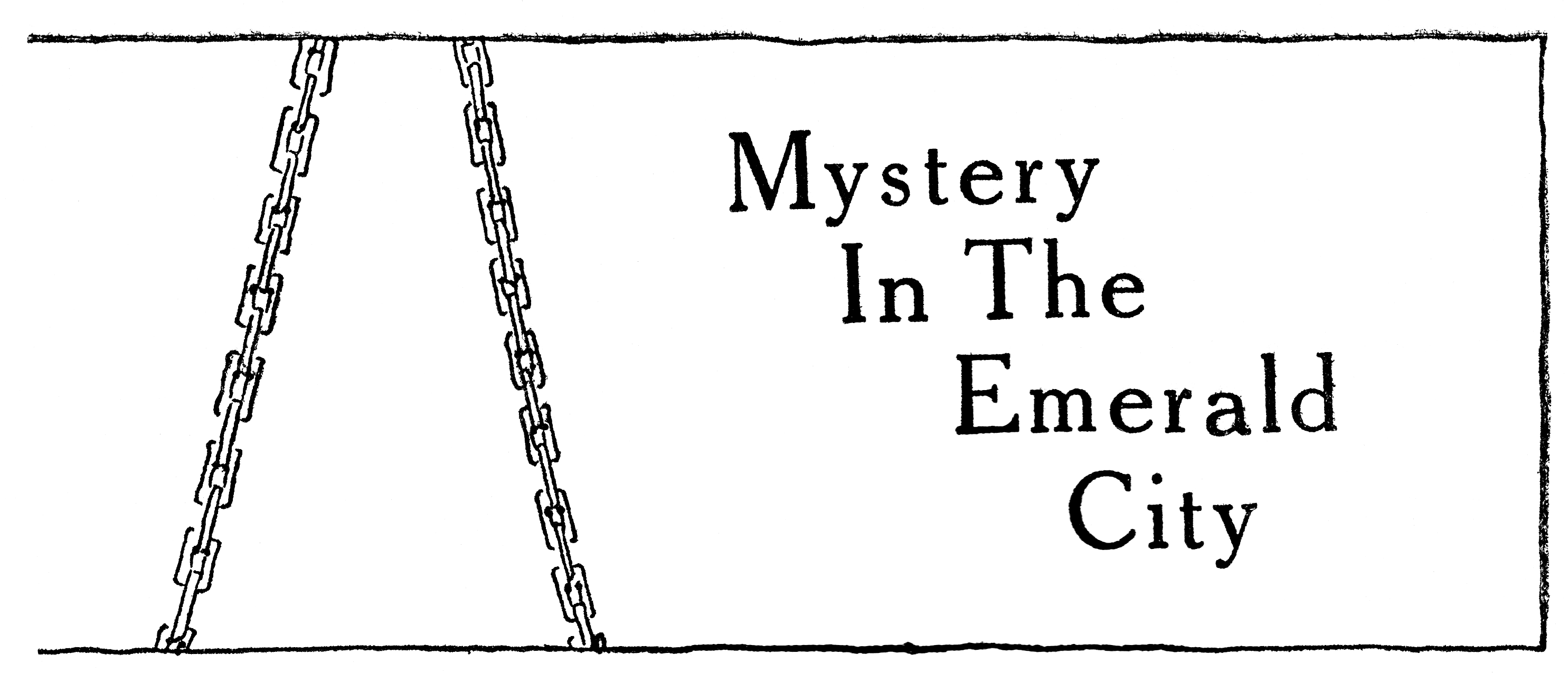 “Emerald City!” panted Piecer, forgetting his weariness for a moment. “Why, that’s the capital of Oz. Patches and pincushions! Why, I never expected to see the Emerald City! Maybe our next Queen’s in the capital, old fellow!”