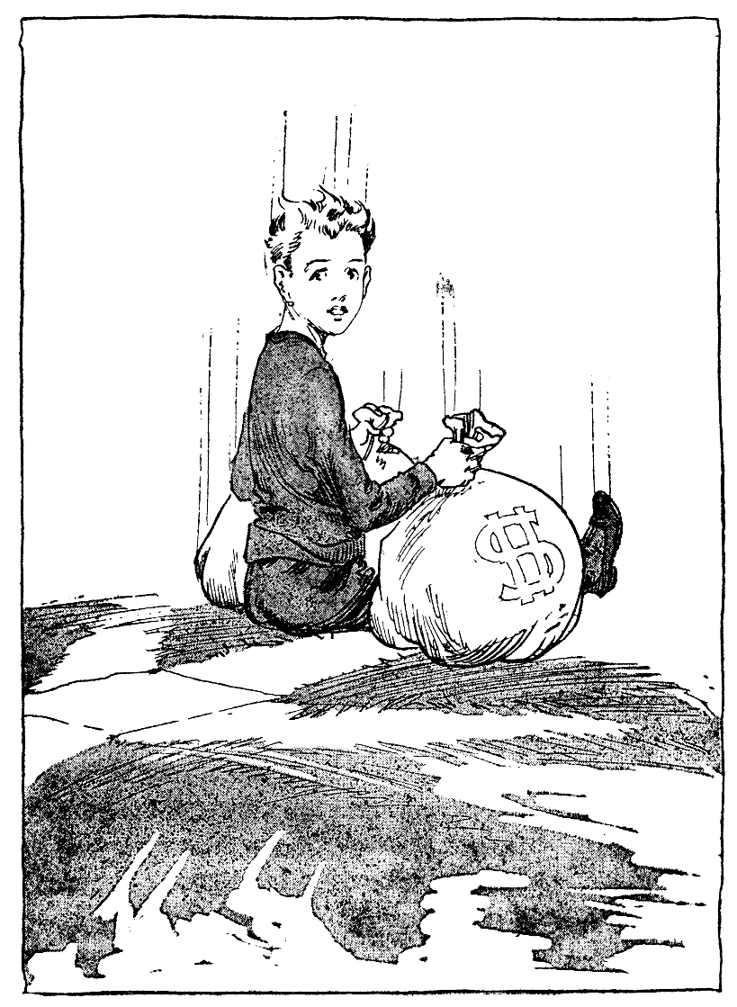 “Show us Peter,” panted Ozma, for she was a little out of breath from her run. At her words the country scene in the picture faded and there was Peter, sitting in the middle of a dusty ball field, with a bag of gold on each side, and a crowd of cheering boys around him.
