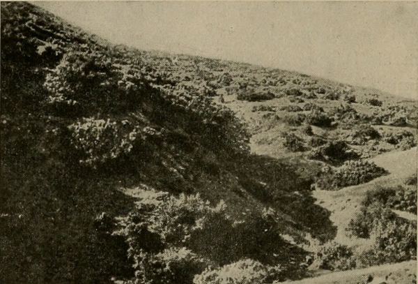 Südlich von Krivolac durchläuft die Eisenbahn mit dem Wardar ein weites Becken, welches von einem Kranze kahler Berge eingeschlossen ist. Nur in weiter Ferne sieht man im Südwesten die schönen Formen schneebedeckter Berge hervorragen. Die näher liegenden Berge zeigen an ihren Hängen alle Zeichen einer weitgehenden Erosion. Steile Abstürze mit den scharfen Schatten der vom Regenwasser gerissenen Schluchten strahlten im Scheine der Nachmittagssonne in den stärksten Farben: ziegelrote, orangegelbe und violette neben braunen und weißen Hängen. Ein geradezu phantastisches Bild: bizarre Formen und eigenartige grelle Farben. Das waren ganz ungewohnte Landschaftsbilder, die mich[5] an Gegenden erinnerten, wie ich sie in Mexiko und am Roten Meer gesehen hatte.