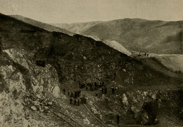Der Fluß wurde kleiner, die Landschaft immer sommerlicher, höhere Bergketten traten im Süden auf, zum Teil noch mit Schnee[3] bedeckt. Schließlich verließ die Bahn das Moravatal, überschritt die Wasserscheide und trat in der Nähe von Kumanovo in das mazedonische Gebiet ein, was sich in dem ganzen Charakter der Landschaft kundgab. Die Berge waren zurückgetreten, eine weite Ebene breitete sich aus. Wald fehlte hier, während die Felder schon einen vorgeschrittenen Zustand aufwiesen, Gerste und Roggen standen mit fertigen Ähren, einzelne blühende Mohnfelder verrieten den südlicheren Charakter des Landes.