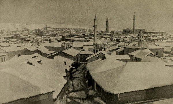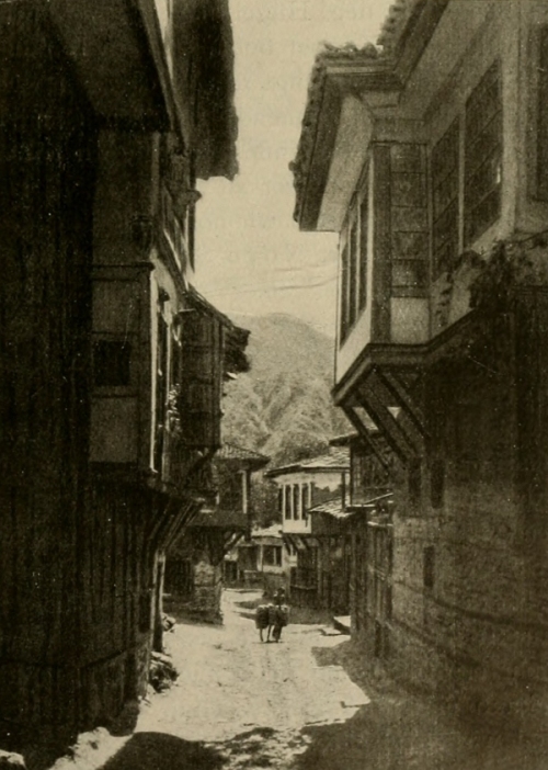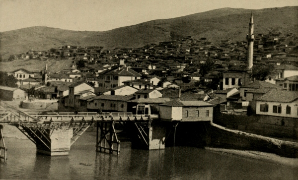 Weite Getreideäcker, Obsthaine und Dörfer mit Lehmhütten füllten die Ebene, die der Zug durchfuhr, um die Stadt Üsküb, slawisch Skopje genannt, zu erreichen. Bei der Einfahrt überraschte der Wardar als breiter Fluß, Minarets, Moscheen und die hochragende Zitadelle gaben der Stadt ein orientalisches Gepräge. Das malerische Bild der Gebäude wurde sehr gehoben durch die Menge stattlicher Pappeln, die sich hinter den Häusermassen erhoben; rings um die Stadt ziehen sich Ketten von schöngeformten Gebirgen, von denen einige jetzt Mitte Mai noch tief beschneit waren. Vor ihnen dehnt sich eine hügelige Ebene voll reicher Pflanzungen aus.