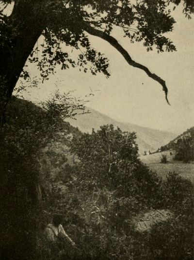 Vor uns dehnten sich im Tal von Hudova vor allem große Maulbeerpflanzungen aus; zwischen den Bäumen war Getreide gepflanzt. Die Maulbeeren waren zum Teil noch in Blüte. Unser Weg führte zwischen blühenden Rosen-, Brombeer- und Weißdornhecken und war so eng, die Hecken so dicht und üppig, daß bei der flotten Fahrt Zweige und Blüten den Pferden und mir ins Gesicht schlugen. Vom Wegrand dufteten die mannigfaltigsten Blüten, umsummt von einer Menge von Insekten. Vögel vieler Arten machten auf sie Jagd. Aus den dichten Gebüschen begann der Gesang zahlreicher Nachtigallen sich zu erheben, während allmählich der Abendsonnenschein sich durch das Tal[8] ergoß und fern hinter mir auf dem Wardarfluß sich spiegelte. Noch weiter westlich grenzte ein in zarten Farben verschwimmendes Hochgebirge, dessen Gipfel noch breite Schneefelder trugen, in schönen dachsteinähnlichen Formen die Ferne ab.