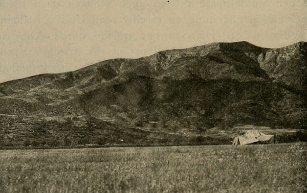 In der Ferne sah man das Tal in eine weite Ebene ausmünden, die im Süden sich wieder zu einem Bergpaß schloß. Es war die Ebene von Hudova, die mich jetzt für einige Monate beherbergen sollte. Wir liefen in den Bahnhof von Hudova ein den ein ungeheures Barackenlager umgab. Dies war das letzte große Etappenlager vor der Front gegen Saloniki. Etwa 100 km von Hudova aus gegen Süden und Südosten erstreckt sich noch das Wardartal, bis der Fluß westlich Saloniki ins Ägäische Meer mündet. An die Ebene von Hudova schließt sich noch ein Schluchtgebiet des Wardar an, hier von weniger stattlichen Bergen eingeschlossen. In Friedenszeiten wäre die Bahn bis Saloniki durchgelaufen. Jetzt fand sie in Miletkovo ihren Abschluß; etwas weiter flußabwärts lagen Negorci und Gewgeli; etwa 15 Kilometer[7] südlich dieser Stadt verlief die feindliche Front, welche meiner Forschungsarbeit eine durchaus nicht natürliche Grenze setzte.