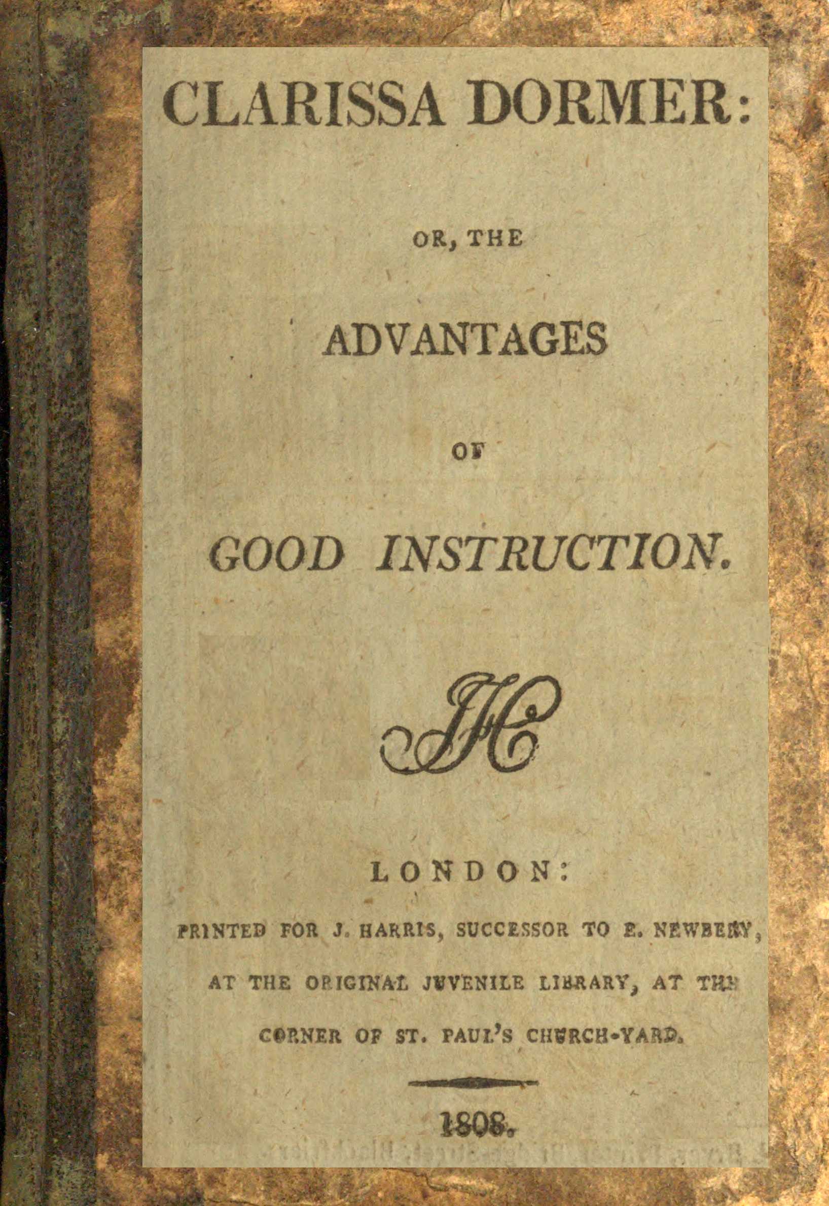 “Mr. and Mrs. Dormer,” said he to Miss Melville, “have no other child than Clarissa; and I am sorry to say that she has been spoiled by too much indulgence. She must not be corrected; and even if she strikes you, you must[8] not complain. Her parents are both passionate, and, I believe, proud of their wealth; yet they want not generosity; and I am persuaded, if you can but gain the affections of the child, you may live in comfort. Your good sense will lead you to adopt some means of gaining authority over a child, who, though wayward, is not destitute either of good nature or good sense. The salary is very handsome; and if, after twelve months residence, you do not wish to continue, they agree to pay your passage back to England.—You may take a few days to consider the subject, and I shall make no[9] farther inquiries till I receive your answer.”