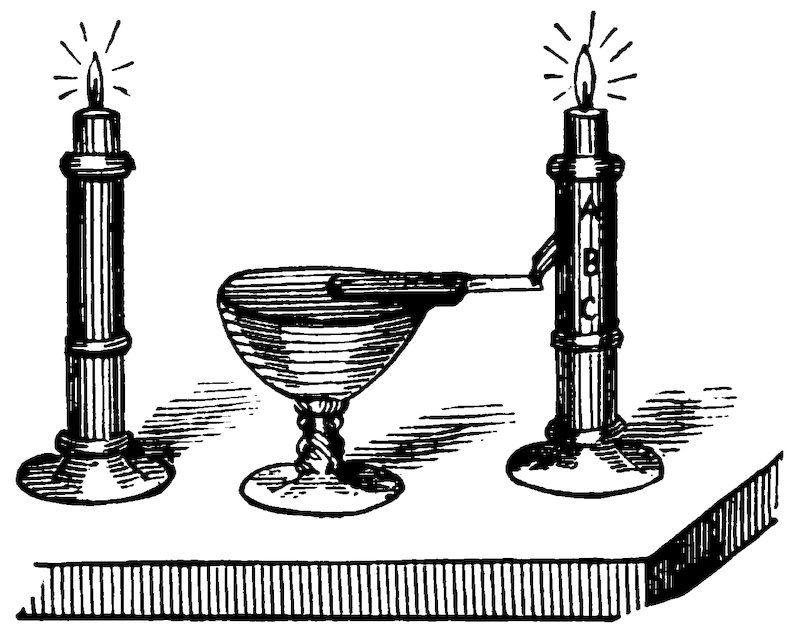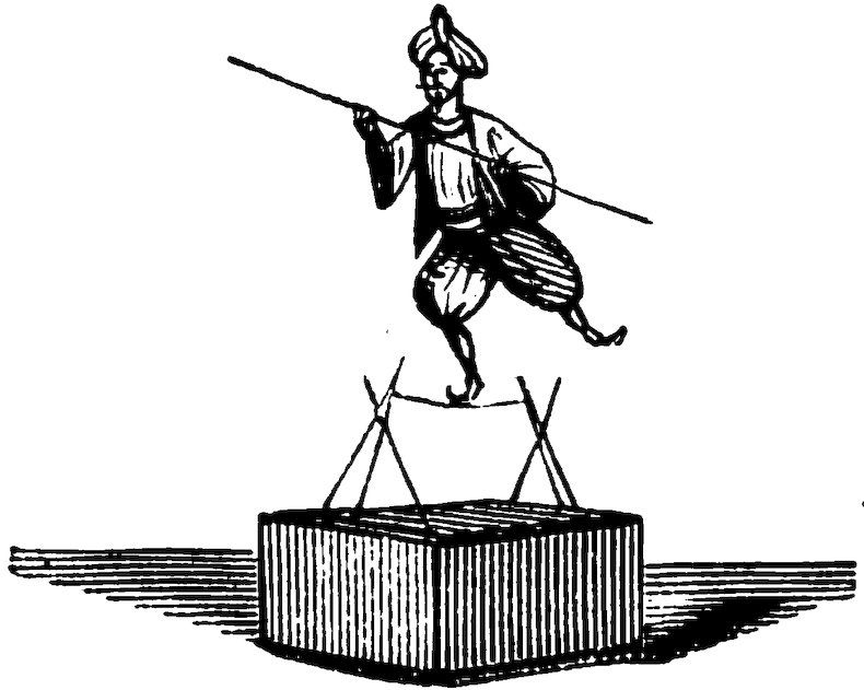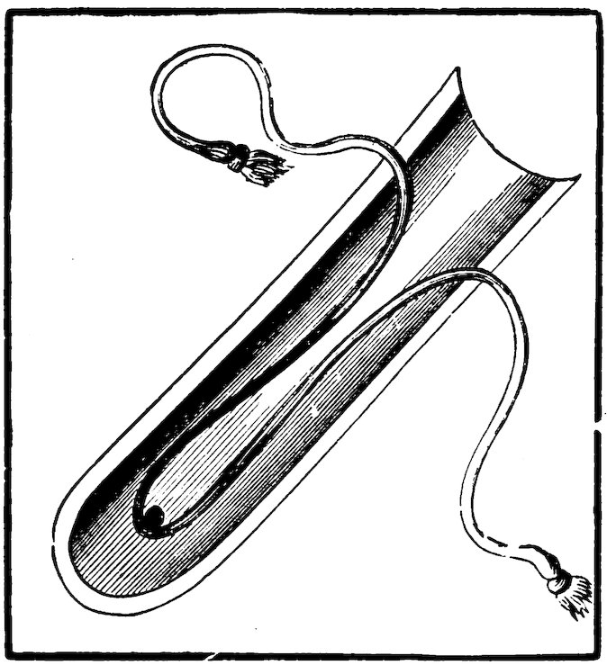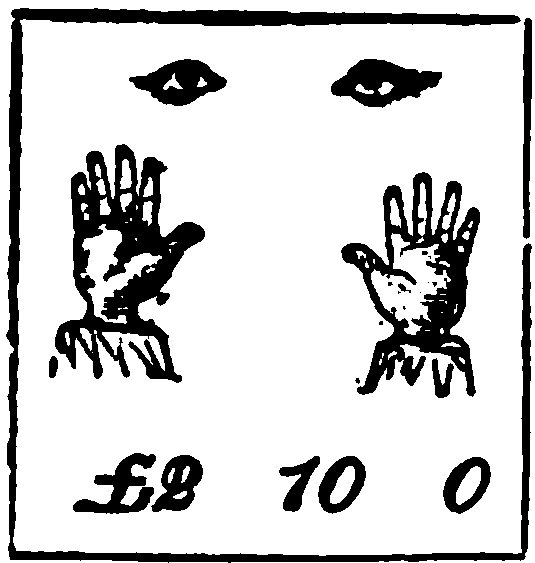 Cover the palm with sand, ashes, or any non-conductor, and calmly put the live coals on it. Which ancient “sell” will be found in the first German mediæval play, entitled “The Burning Iron,” by Hans Sachs, “performed 17for the first time in Nuremberg in the year 1531.” A peasant woman suspects her husband of some crime, and she arranges with her mother that he must pass under the ordeal of the “burning iron”—that is, a piece of iron made red-hot must be picked up with his bare hand, and carried round the room. If his hand remain unscathed, he is innocent; if he be burnt, then he is guilty. The husband promises to undergo the ordeal; but before doing so, manages to place, unseen by his wife, a flat piece of wood upon the hollow of his hand, and with this deception he passes through the ordeal successfully. Mr. Hanky Panky believes this gentleman to have been his “long-lost brother.”