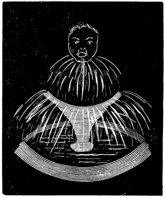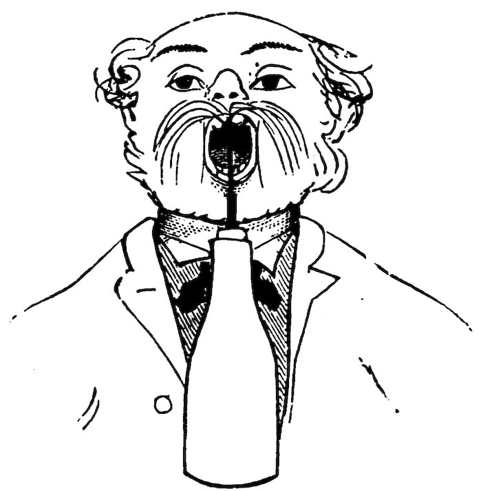 Nevertheless, Mr. Panky, with his usual assurance, announces that—without his approaching—he has the power to attract the coin to him, and, in truth, he suddenly holds it up in plain sight. The person takes away the handkerchief, and is even more astounded than the most impressionable amongst the spectators, to see nothing but the water in the glass—of which the magician relieves him by swallowing it.