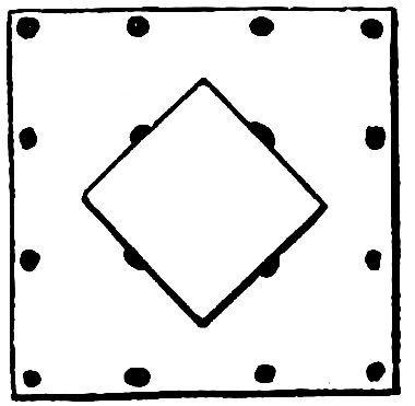 The success of the trick depends on their being exactly alike in size. Place a sixpence in the centre of one of the pieces at the place marked A, then fold it carefully over at the crease on the side marked B, and also again at the side marked C. When you have done this, turn down the end marked D upon the centre A and again fold over on E. You have thus formed a small parcel the shape of Fig. 8, with a sixpence in the middle. You must then put a shilling in the centre of the other piece of paper, and fold it up exactly the same 23size and shape as the first piece. When you have done this, paste the two parcels together at the back of the ends marked F in Fig. 8, and the sides will be so even that both will appear as one. You can then open the side of the paper containing the smaller coin, and show it to your audience, at the same time informing them that you are going to open a mint on a small plan, and coin a shilling from a sixpence. Dexterously turn over the side containing the shilling, and upon opening the paper, to the general astonishment, instead of a sixpence they will behold a shilling.