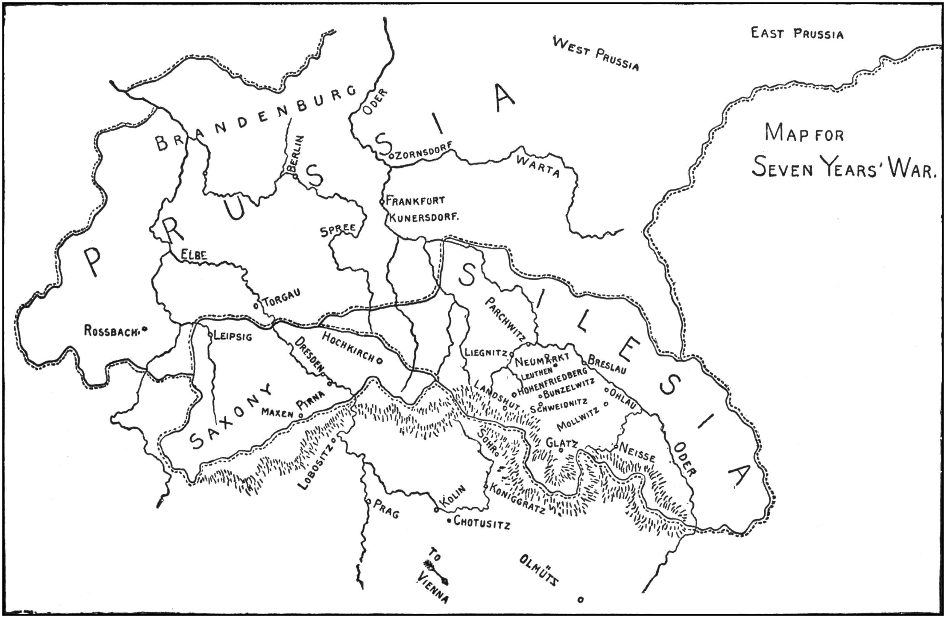 His own fortresses were of importance to Frederick because his enemy respected them. But he paid small heed to the enemy’s. He could strike him so much harder by battle, that he never frittered away his time on sieges, except as a means to an end. The allies clung to their fortified positions. Frederick despised them, and showed the world that his gallant Prussians could take them by assault.