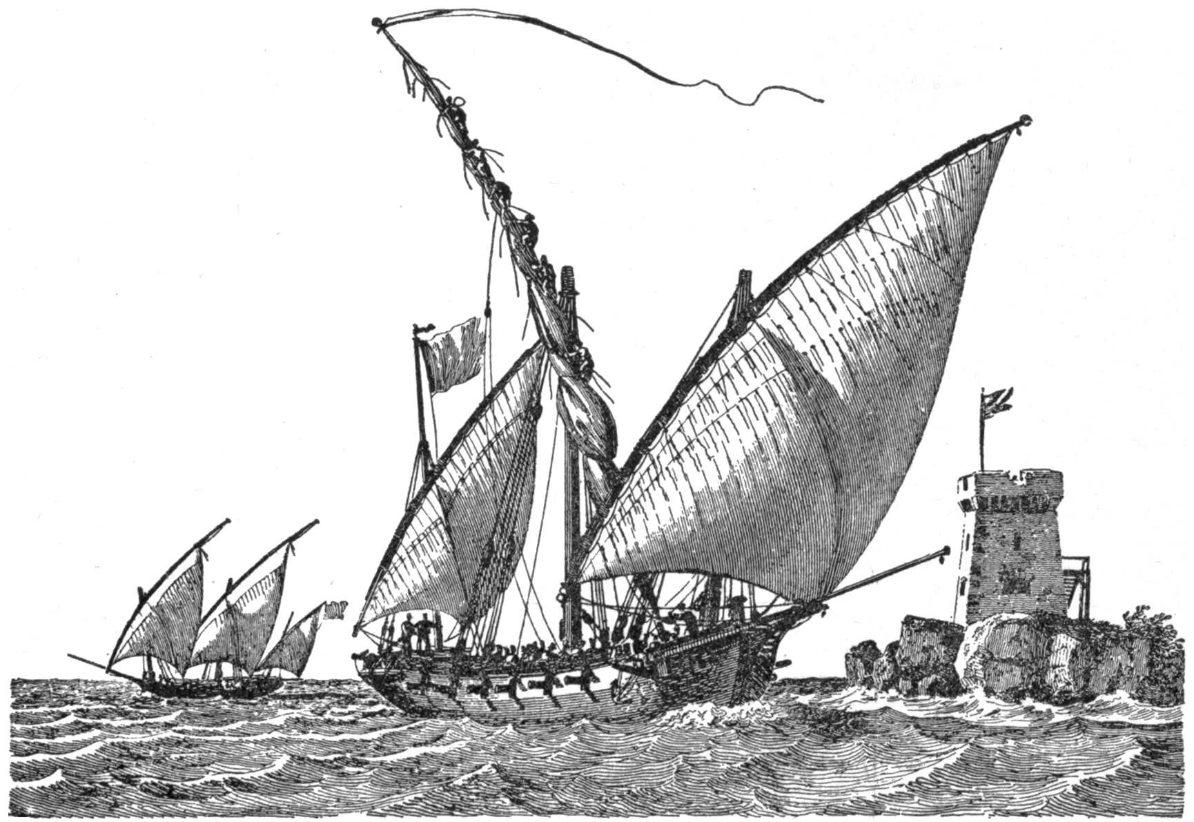 | An English “Seventy-four” and a Frigate Coming to Anchor. (From an old engraving), | 59 |