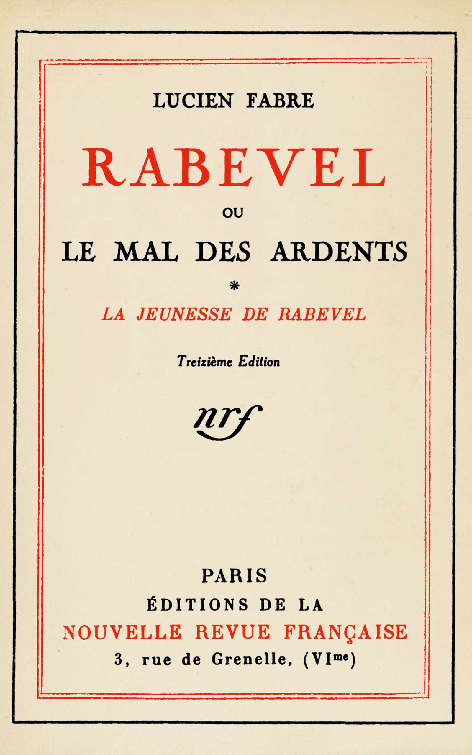 IL A ÉTÉ TIRÉ DE CET OUVRAGE, APRÈS IMPOSITIONS SPÉCIALES CENT HUIT EXEMPLAIRES IN-QUARTO TELLIÈRE SUR PAPIER VERGÉ PUR FIL LAFUMA-NAVARRE AU FILIGRANE DE LA NOUVELLE REVUE FRANÇAISE, DONT HUIT EXEMPLAIRES HORS COMMERCE MARQUÉS DE A à H, CENT EXEMPLAIRES RÉSERVÉS AUX BIBLIOPHILES DE LA NOUVELLE REVUE FRANÇAISE, NUMÉROTÉS DE I A C, ET SEPT CENT QUATRE VINGT DOUZE EXEMPLAIRES RÉSERVÉS AUX AMIS DE L’ÉDITION ORIGINALE SUR PAPIER VELIN PUR FIL LAFUMA-NAVARRE, DONT DOUZE EXEMPLAIRES HORS COMMERCE MARQUÉS DE a à l, SEPT CENT CINQUANTE EXEMPLAIRES NUMÉROTÉS DE 1 A 750 ET TRENTE EXEMPLAIRES D’AUTEUR HORS COMMERCE NUMÉROTÉS DE 751 A 780, CE TIRAGE CONSTITUANT PROPREMENT ET AUTHENTIQUEMENT L’ÉDITION ORIGINALE.